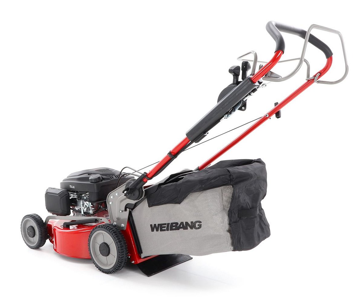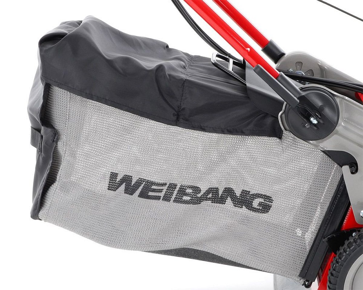 Ďalej je táto kosačka vybavená pevnými zadnými kolesami a sklopnou rukoväťou pre ľahké uskladnenie a prepravu. Masívny žačí nôž s mohutnými vyhadzovacími "lopatami - tzv. BIG BLADE" a veľký kôš spolu so zaujímavou cenou robia z tejto kosačky WEIBANG WB 456 SCV 6in1 kvalitného pomocníka s bojom proti zelenému živlu. Ďalším veľkým unikátom je motor, ktorý patrí medzi to najlepšie čo WEIBANG v danej triede ponúka. Jedná sa o profesionálny silný motor rozvodu OHV s výkonom 6 HP a vysokým krútiacim momentom 9,5 Nm - 166 ccm.