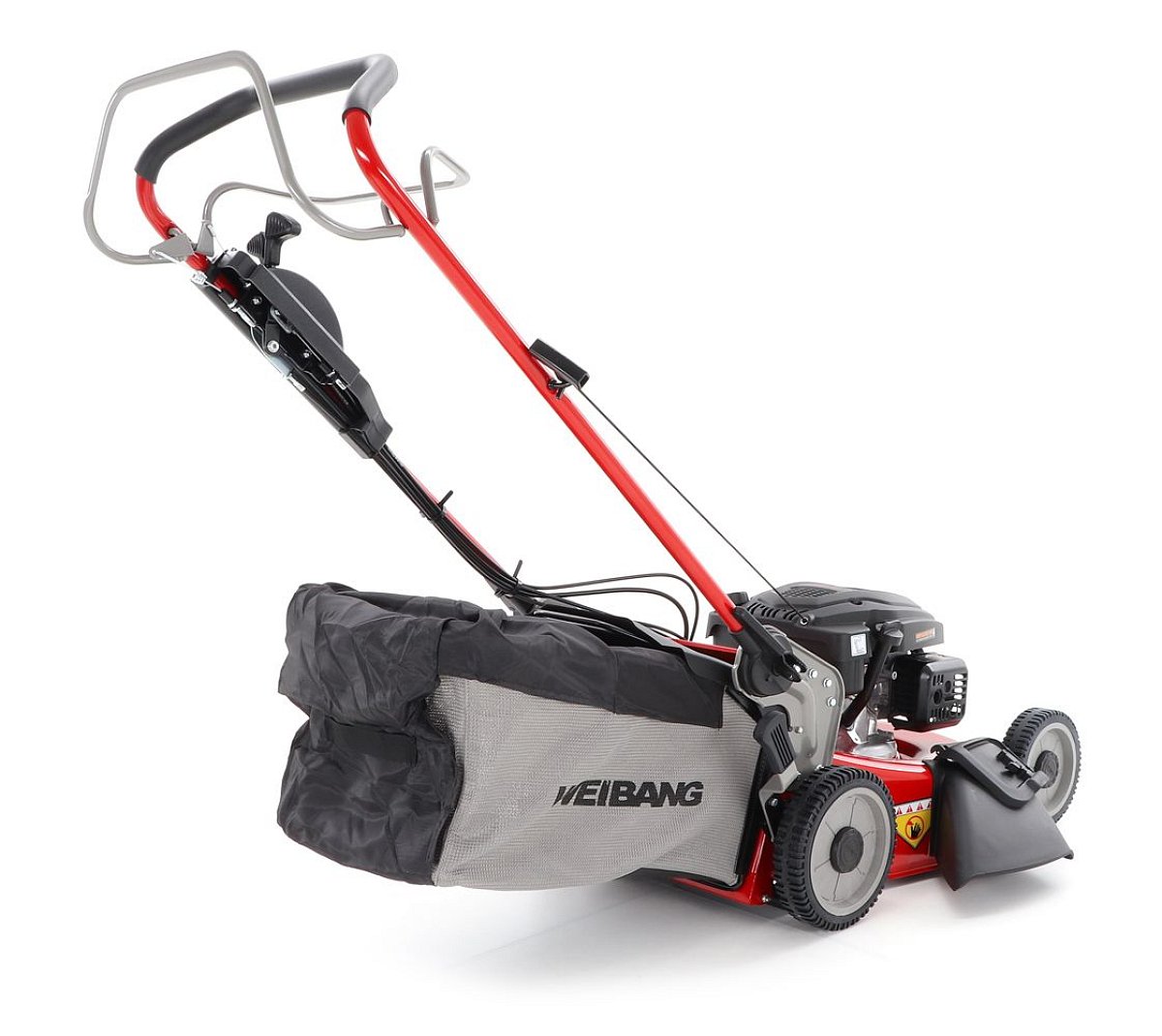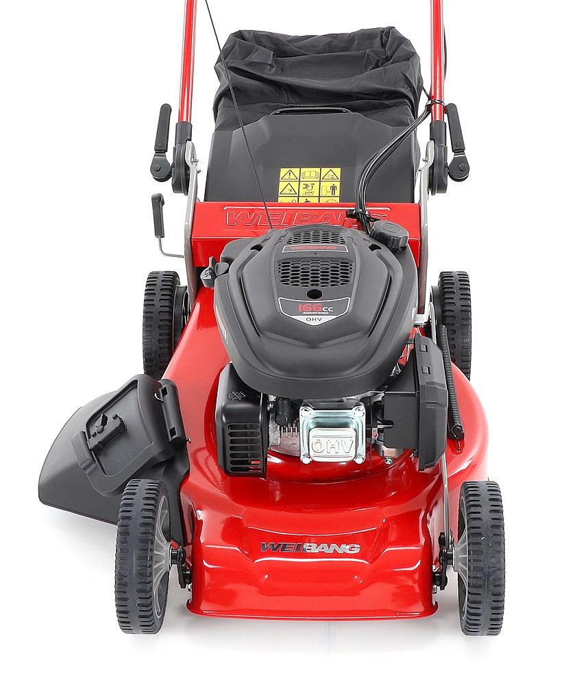 Ďalej je táto kosačka vybavená pevnými zadnými kolesami a sklopnou rukoväťou pre ľahké uskladnenie a prepravu. Masívny žačí nôž s mohutnými vyhadzovacími "lopatami - tzv. BIG BLADE" a veľký kôš spolu so zaujímavou cenou robia z tejto kosačky WEIBANG WB 506 SCV 6in1 kvalitného pomocníka s bojom proti zelenému živlu. Ďalším veľkým unikátom je motor, ktorý patrí medzi to najlepšie čo WEIBANG v tejto triede ponúka. Jedná sa o profesionálny silný motor rozvodu OHV s výkonom 6 HP a vysokým krútiacim momentom 9,5 Nm - 166 ccm.