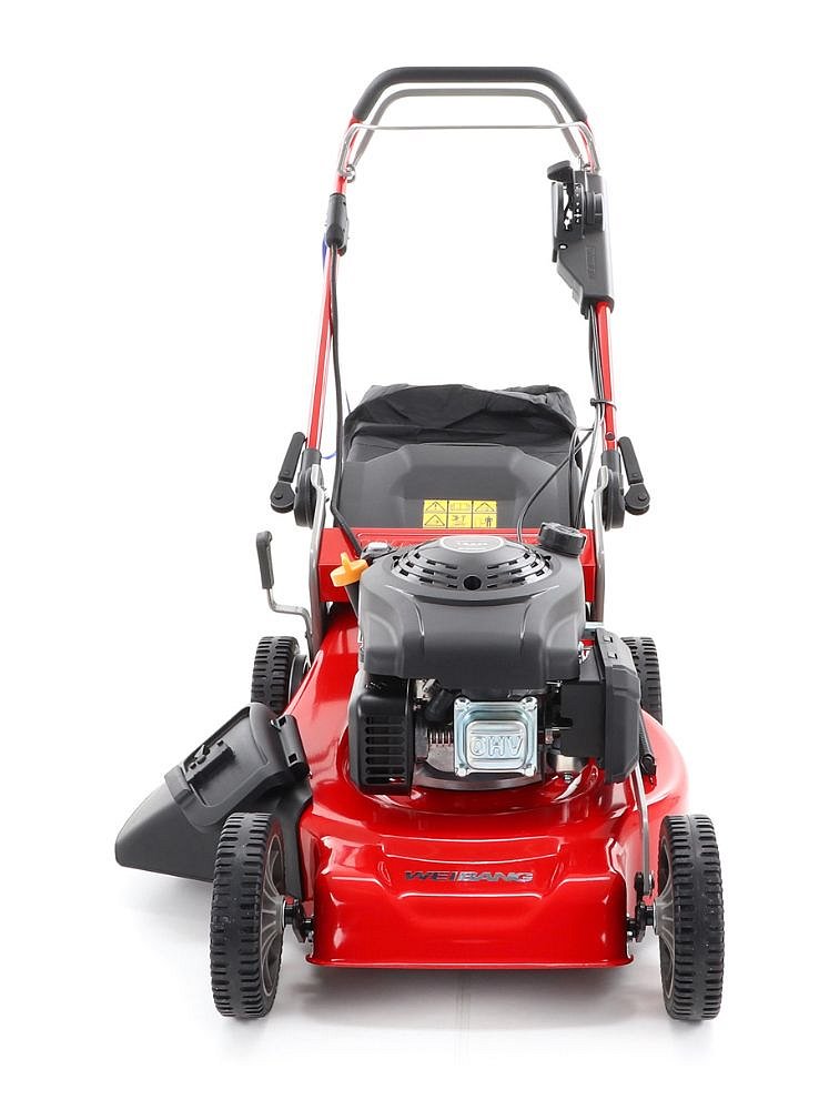 Veľkou prednosťou tejto kosačky je variabilnosť použitia funkcií 6 in 1, čo znamená, že kosačka WEIBANG WB 506 SCVE 6in1+ elektro štart vie zbierať pokosenú trávu do koša, mulčuje, vyhadzuje trávu bokom, zadným deflektorom a má variabilný pojazd daný 7 rýchlostným v. Výhoda silného motora s rozvodom OHV s výkonom 6 HP a noža s veľkými lopatami (BIG BLADE) Vám perfektne zoberie aj prerastenú mokrú trávu. Pogumované sendvičové kolesá sú uložené v obojstranných guličkových ložiskách, centrálne nastavenie výšky kosenia je u tejto značky samozrejmosťou. Veľkým nadštandardom u tejto kosačky je použitá špeciálna trecia spojka na noži kosačky pod unášačom, ktorá je schopná preklzu noža pri narazení do pevnej prekážky. Táto funkcia môže eliminovať škody na kosačke spôsobené nárazom noža do prekážky. Ergonomická rukoväť s ovládacími prvkami otáčok motora a špeciálny povlak na obvode zberného koša, ktorý stimuluje prúd vzduchu, aby sa neprášilo na obsluhu. Ďalej je táto kosačka vybavená pevnými zadnými kolesami a sklopnou rukoväťou pre ľahké uskladnenie a prepravu. Masívny žačí nôž s mohutnými vyhadzovacími "lopatami - tzv. BIG BLADE" a veľký kôš spolu so zaujímavou cenou robia z tejto kosačky WEIBANG WB 506 SCVE 6in1 + elektro štart kvalitného pomocníka s bojom proti zelenému živlu. Ďalším veľkým unikátom je motor, ktorý patrí medzi to najlepšie čo WEIBANG v danej triede ponúka. Jedná sa o profesionálny silný motor rozvodu OHV s výkonom 6 HP a vysokým krútiacim momentom 9,5 Nm - 166 ccm. Veľkou výhodou tohto motora je automatický sýtič, tzn. že kosačku naštartujete kedykoľvek a ktokoľvek bez nutnosti čokoľvek na kosačke či motore nastavovať. Samostania veľmi ľahké elektrické naštartovanie zvládne bez problémov každý aj žena či starší človek. Ďalší profesionálny prvok, ktorým kosačka disponuje je masívna kovová variabilná prevodovka s garantovanou dlhou životnosťou.