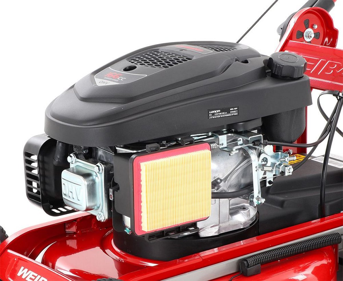 Táto funkcia môže eliminovať škody na kosačke spôsobené nárazom noža do prekážky. Ďalej je táto kosačka vybavená pevnými zadnými kolesami a sklopnou rukoväťou pre ľahké uskladnenie a prepravu. Ďalším veľkým unikátom je motor, ktorý patrí medzi silné motory, čo WEIBANG v tejto triede ponúka.