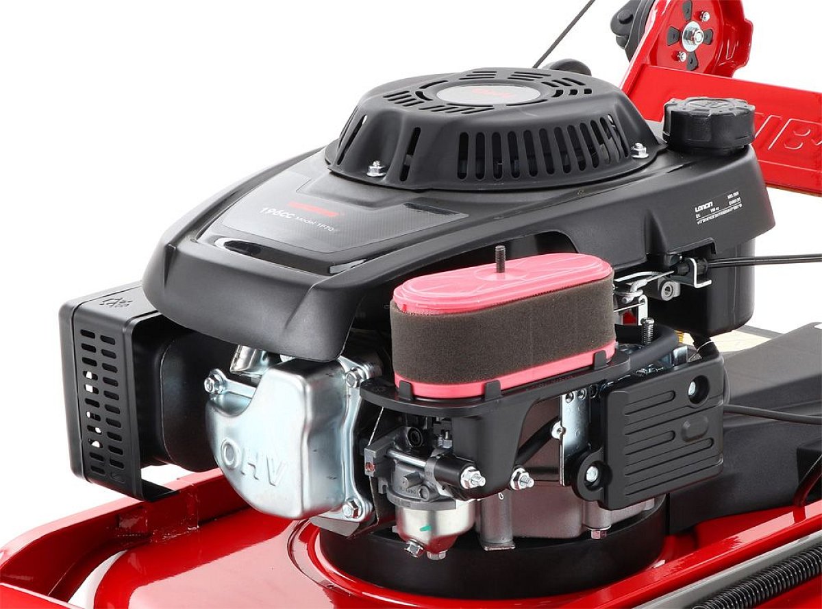 Táto funkcia môže eliminovať škody na kosačke spôsobené nárazom noža do prekážky. Ďalej je táto kosačka vybavená pevnými zadnými kolesami a sklopnou rukoväťou pre ľahké uskladnenie a prepravu. Ďalším veľkým unikátom je motor, ktorý patrí medzi to najlepšie a najsilnejšie čo WEIBANG v tejto triede ponúka. Jedná sa o profesionálny veľmi silný motor rozvodu OHV s výkonom 7 HP a vysokým krútiacim momentom 10,5 Nm - 196 ccm.
