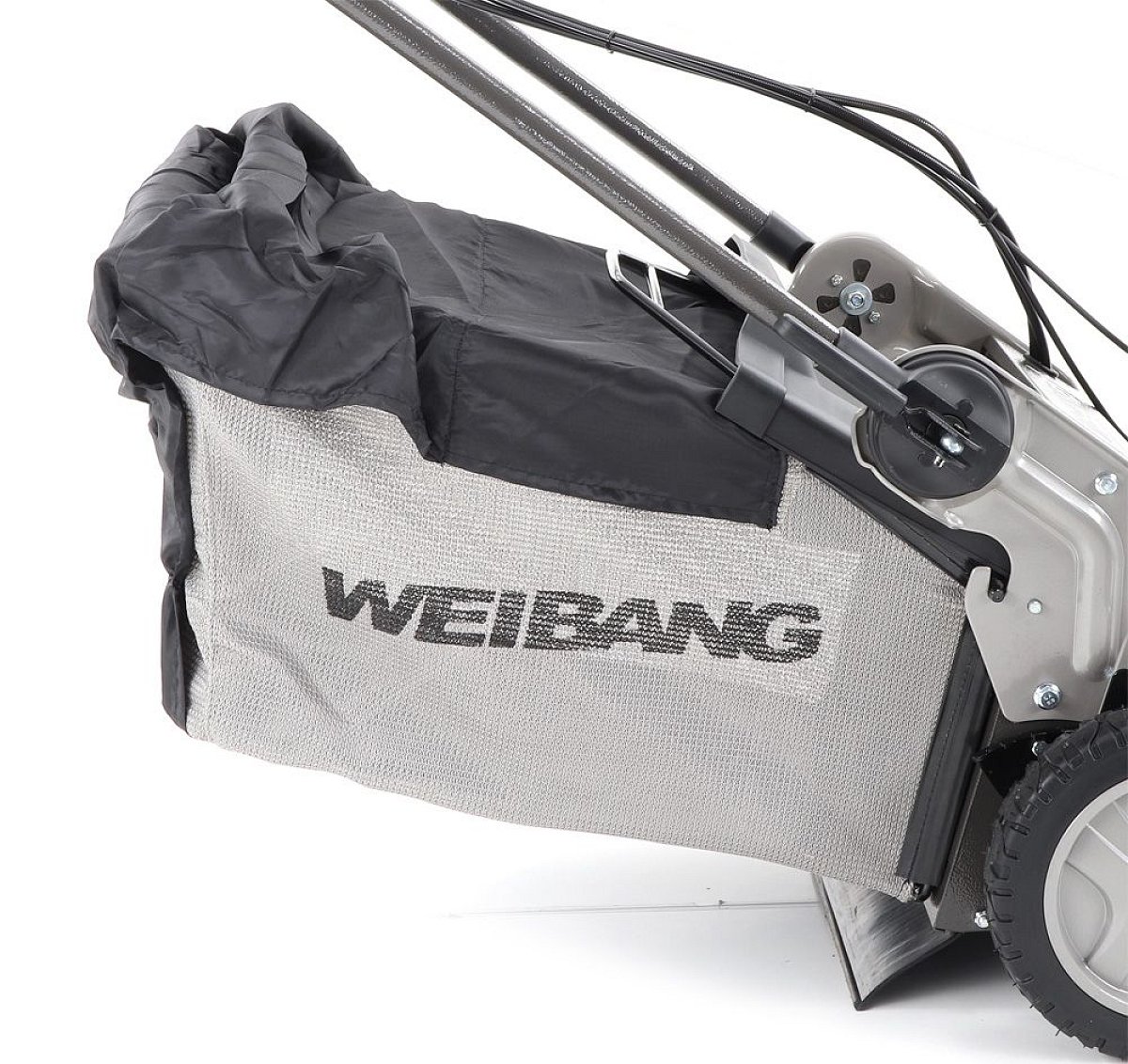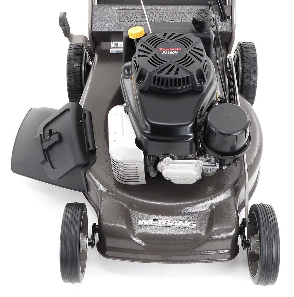 Ďalej je táto kosačka vybavená pevnými zadnými hliníkovými kolesami a sklopnou rukoväťou pre ľahké uskladnenie a prepravu. Masívny žačí nôž s mohutnými vyhadzovacími "lopatami - tzv. BIG BLADE" a veľký kôš spolu so zaujímavou cenou robia z tejto kosačky WEIBANG WB 536 SKVPRO kvalitného pomocníka s bojom proti zelenému živlu v prófesionálnom ťažkom nasadení. Ďalším veľkým unikátom je motor, ktorý patrí medzi to najlepšie čo japonský výrobca KAWASAKI v tejto triede ponúka. Jedná sa o profesionálny silný motor rozvodu OHV s výkonom 6 HP a vysokým krútiacim momentom 11,8 Nm. Ďalšou obrovskou výhodou motora je tlakové mazanie, tj. kosačka môže kosiť aj v extrémnejších podmienkach väčšej svahovitosti a náklonu kosačky bez toho, aby sa zadrel motor.