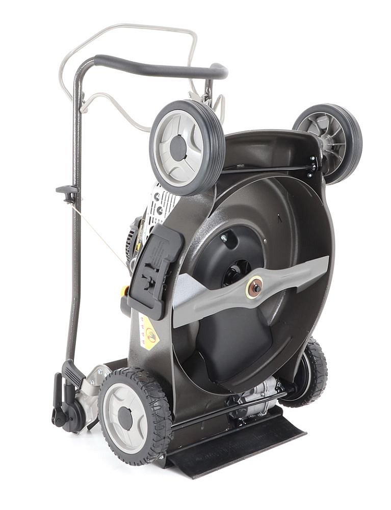 Novinkou kosačky je funkcia tzv. "CHYTRÉ RIEŠENIE", kosačku je možné pre ekonomické uskladnenie, ľahké čistenie, servisovanie otočiť a postaviť na zadné špeciálne pätky šasi, týmto sa ľahko dostanete na spodnú časť žacieho ústrojenstva, uloženie náprav a prevodovku.