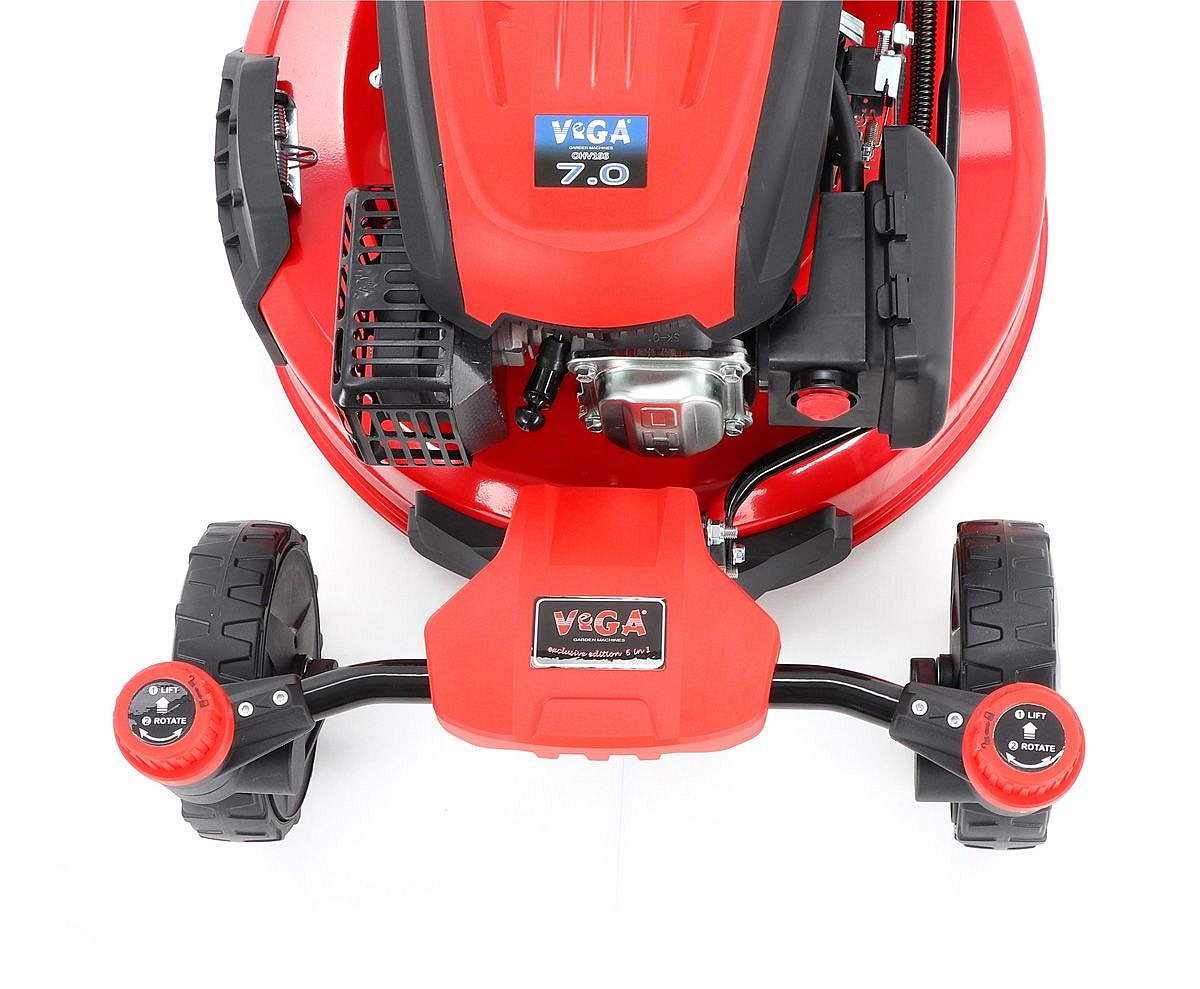 Záhradná motorová kosačka VeGA 51 HWTV 6in1 s pojazdom a otočnými kolesami je tohtoročnou novinkou značky VeGA. Kosačka vyniká vo vyššej strednej triede kosačiek svojim kvalitným spracovaním, skvelou manévrovateľnosťou, výbavou a rovnako tak aj dizajnom. Vďaka predným otočným kolieskam je pohyb a otáčanie s kosačkou zase o krok jednoduchšie.