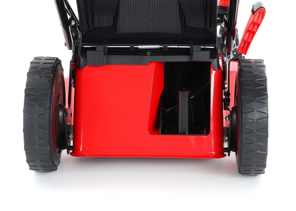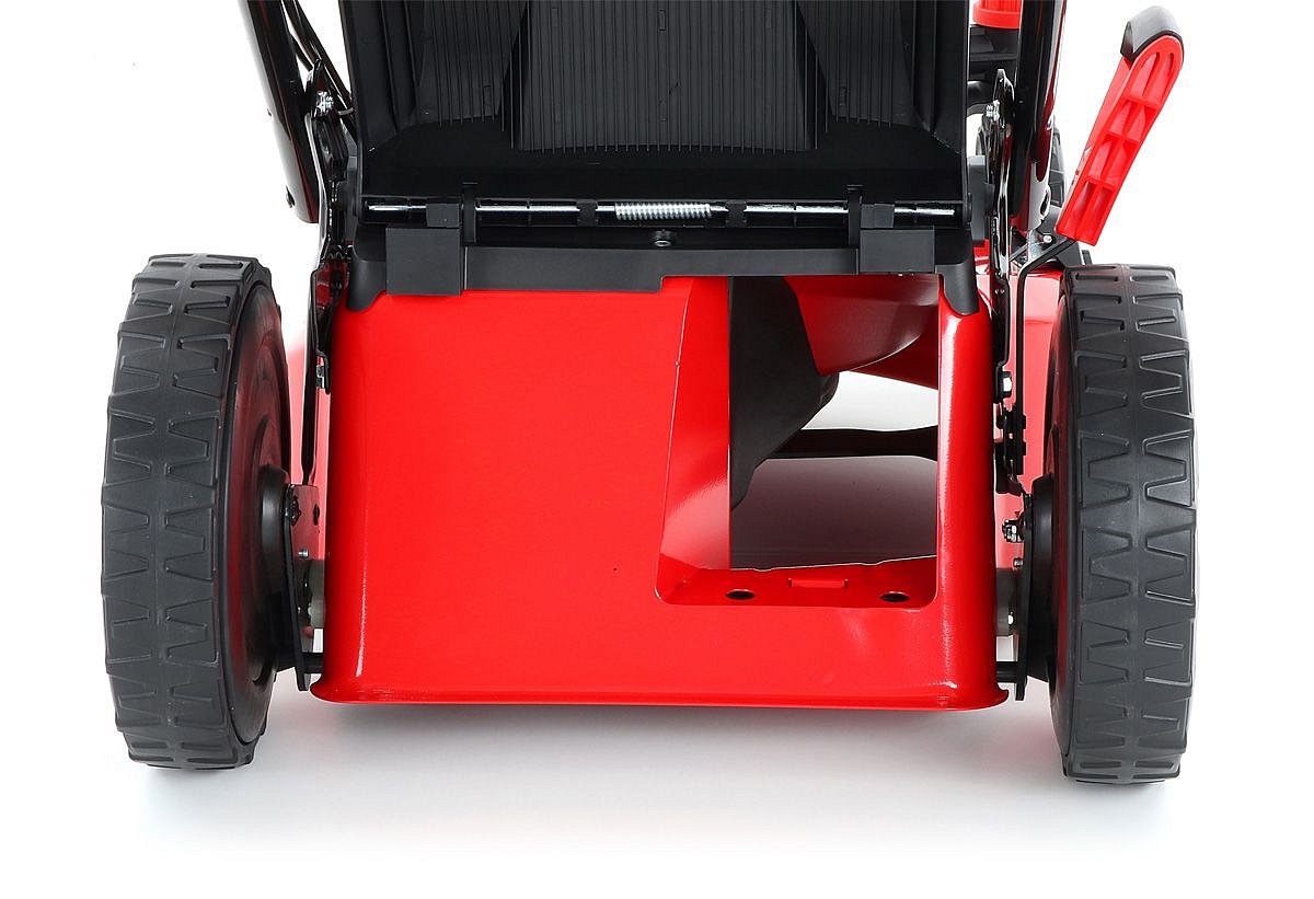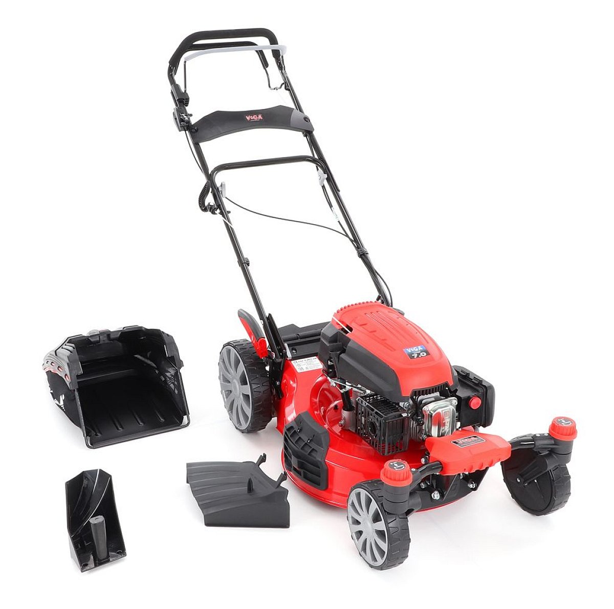 Veľké zadné pojazdové kolesá aj predné kolesá sú uložené v obojstraných guličkových ložiskách, centrálne nastavenie výšky kosenia je u značky VeGA tiež samozrejmosťou, ako ergonomické mäkčené madlo. Objemný zberný kôš s kapacitou 70 litrov má ukazovateľ naplnenia.