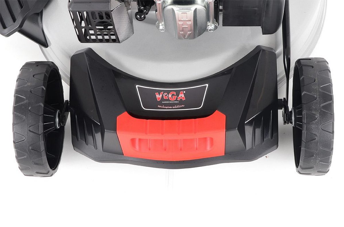 Veľké zadné pojazdové kolesá aj predné kolesá sú uložené v obojstranných guličkových ložiskách, centrálne nastavenie výšky kosenia je u značky VeGA tiež samozrejmosťou.