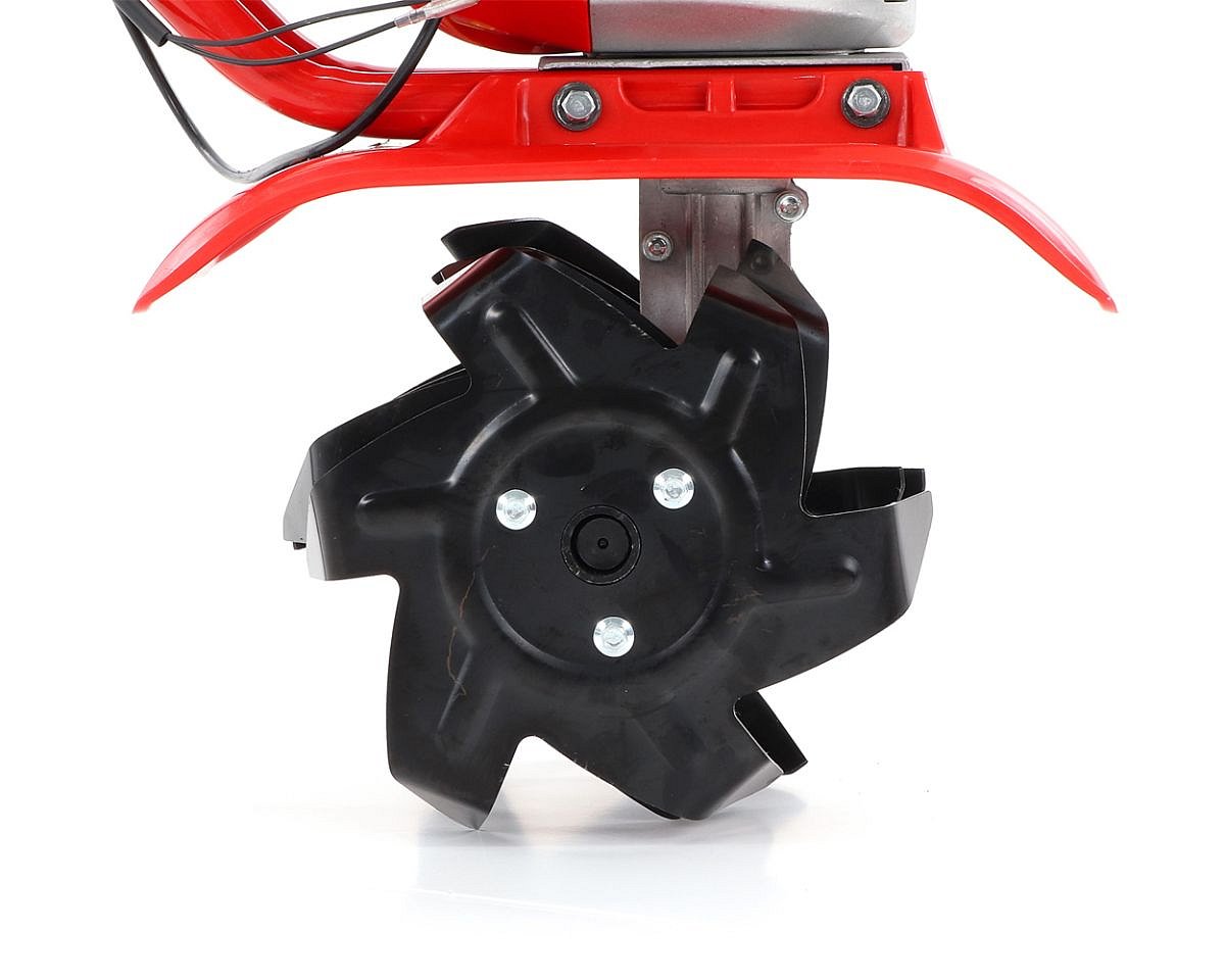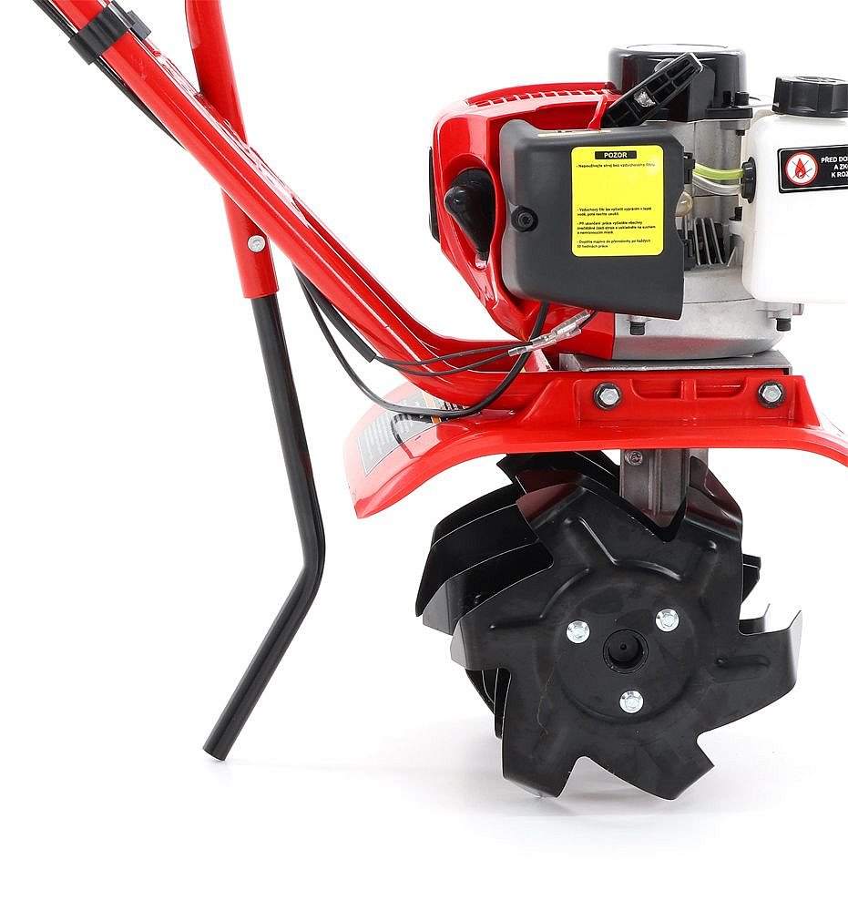 Špeciálne tvarované nože slúžia na dôkladné rozdrvenie zeminy. Kultivátor je osadený kovovou prevodovkou pre dlhú životnosť stroja. Skladacia rukoväť pre ľahký transport aj skladovanie.