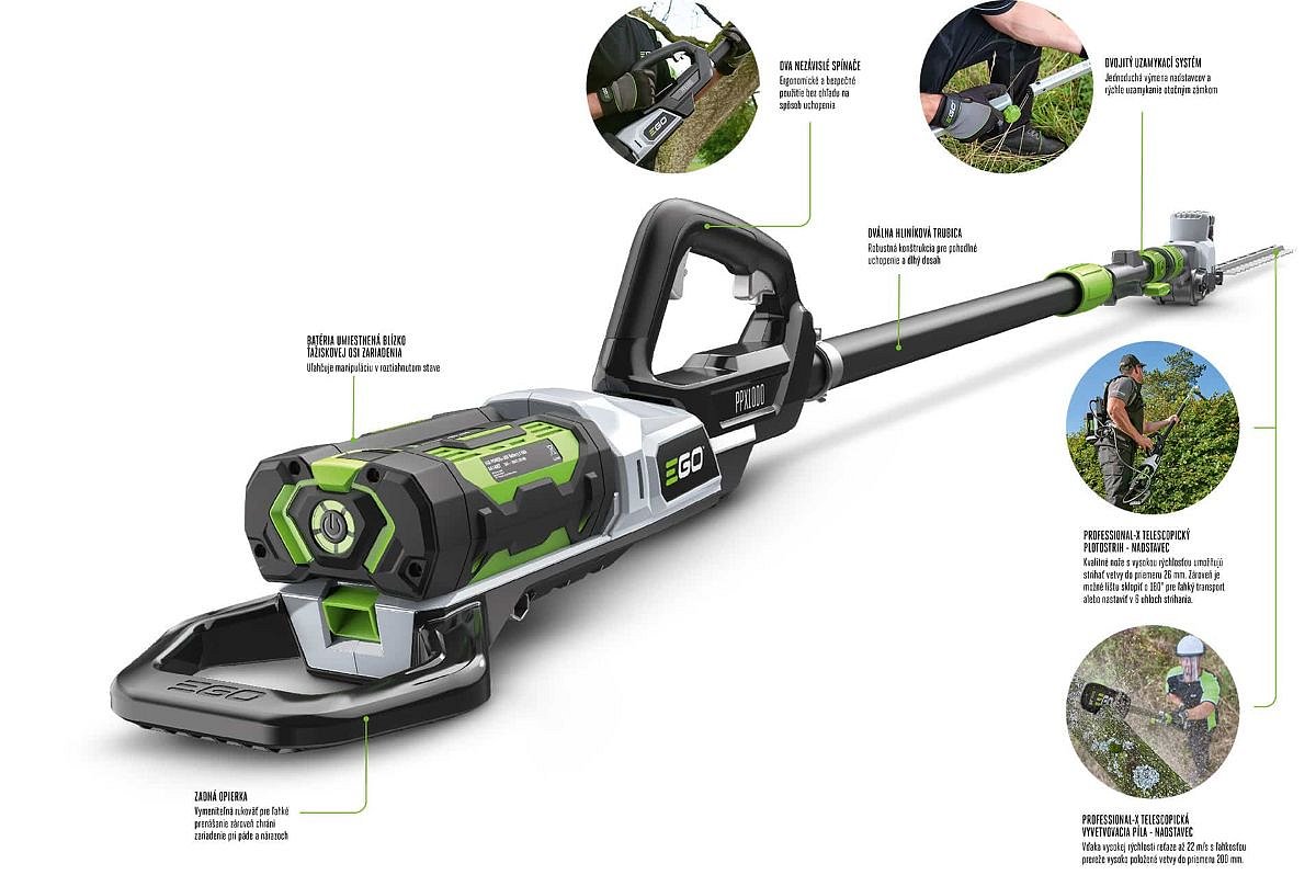 Jej súčasťou sú dva nezávislé bezpečnostné spínače, ktoré dávajú používateľovi možnosť prechytenia a použitia zariadenia v rôznych pozíciach.Zároveň je teleskopická tyč je vybavená osvedčeným a bezpečným mechanizmom pre výmenu nadstavcov v priebehu pár sekúnd bez potreby náradia, pričom maximálna dĺžka s nadstavcom v plne roztiahnutom stave dosahuje až 400 cm pri použití vyvetvovacej píly.Toto zariadenie bolo navrhnuté so zameraním na ľahké uskladnenie a transport. V zloženom stave je ľahko prenosné v dodávkach a prívesoch, no zároveň je aj v naplno roztiahnutom stave zachovaná výborná manévrovateľnosť a ergonómia. V cene je Teleskopická tyč PPX1000 a nadstavce Teleskopická vyvetvovacia píla PSX2500 a Teleskopický plotostrih PTX5100. Cena je uvedená bez akumulátora a nabíjačky.
