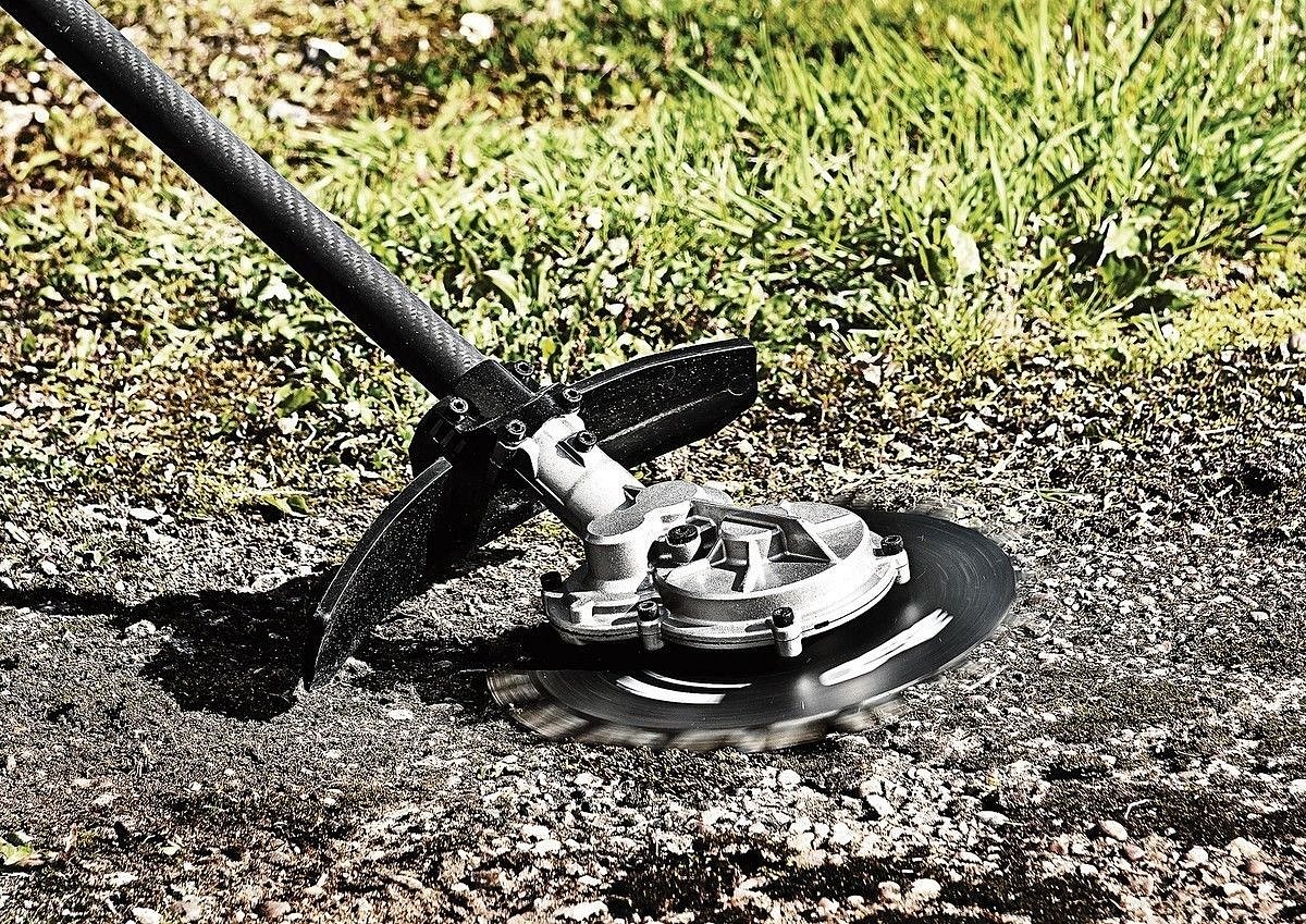 EGO POWER Multi-tool nadstavec Strihací kotúč z rady Professional nahrádza vyžinaciu hlavu na miestach, kde je riziko zranenia alebo škôd spôsobených odlietajúcimi kameňmi obzvlášť vysoké. Svoje využitie nachádza najmä v mestskom prostredí v okolí zaparkovaných áut a pod.