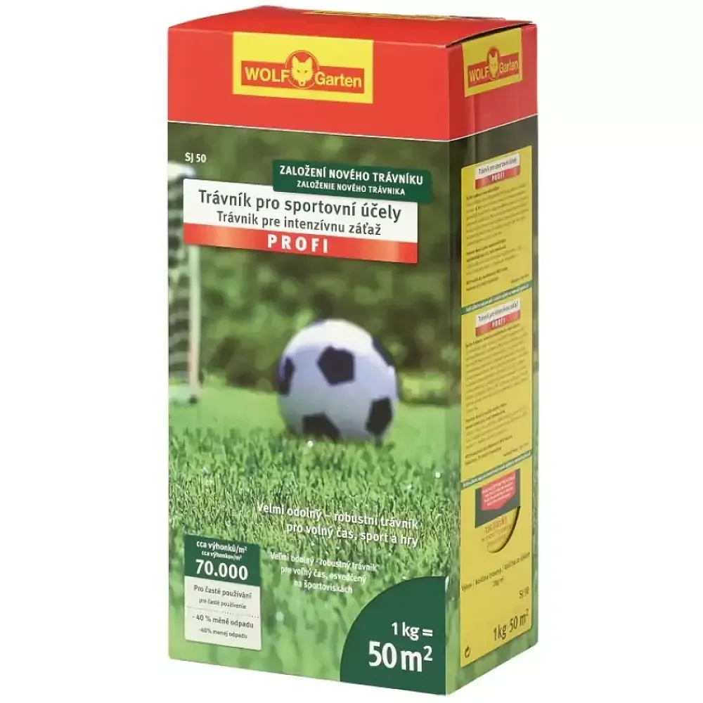 Jednoduchá údržba je jeho prednosťou. V zmesiach osív WOLF-Garten sú obsiahnuté len vybrané špičkové odrody, v optimálnom pomere zmesi a bez cudzích druhov tráv. Rýchlo hustne. Je maximálne záťažový. To sú vlastnosti, ktoré záťažový trávnik PROFI už roky robia najžiadanejším trávnikom od WOLF-Garten. Najlepšie sa osvedčil aj na mnohých medzinárodných športoviskách. Veľmi odolný - robustný trávnik pre voľný čas, šport a hry. Hustota trávnika cca 70 000 výhonkov na 1m2!