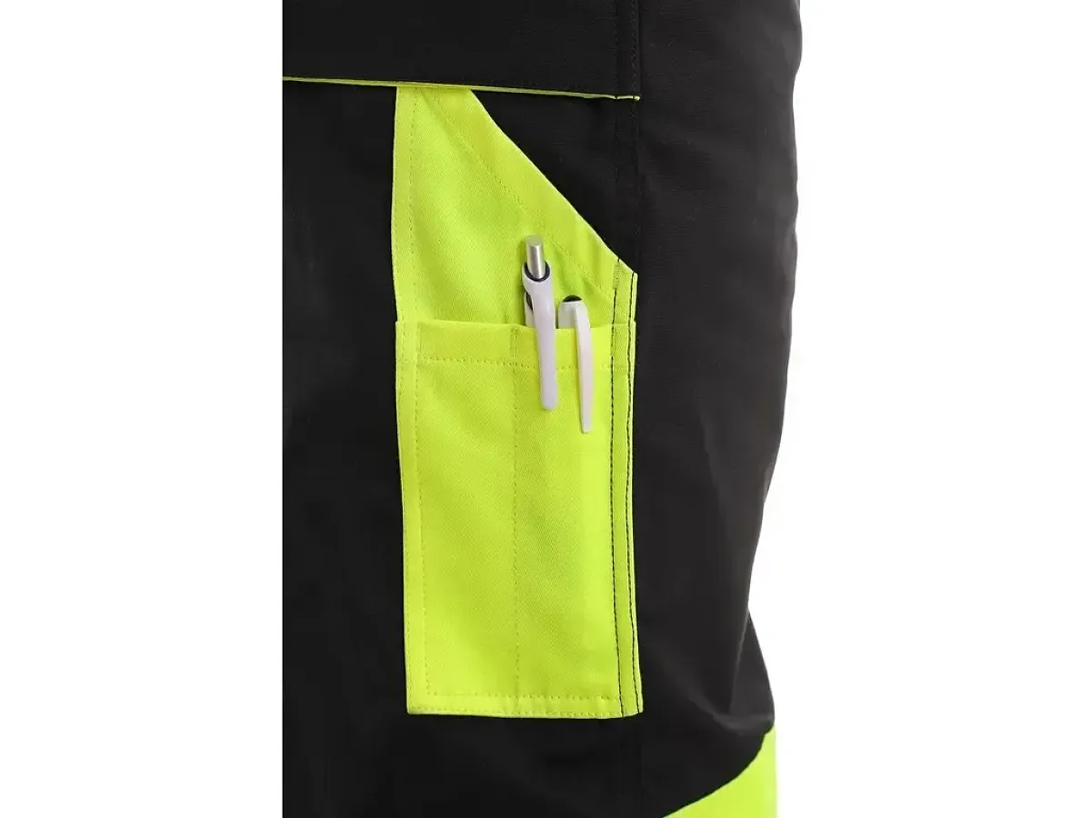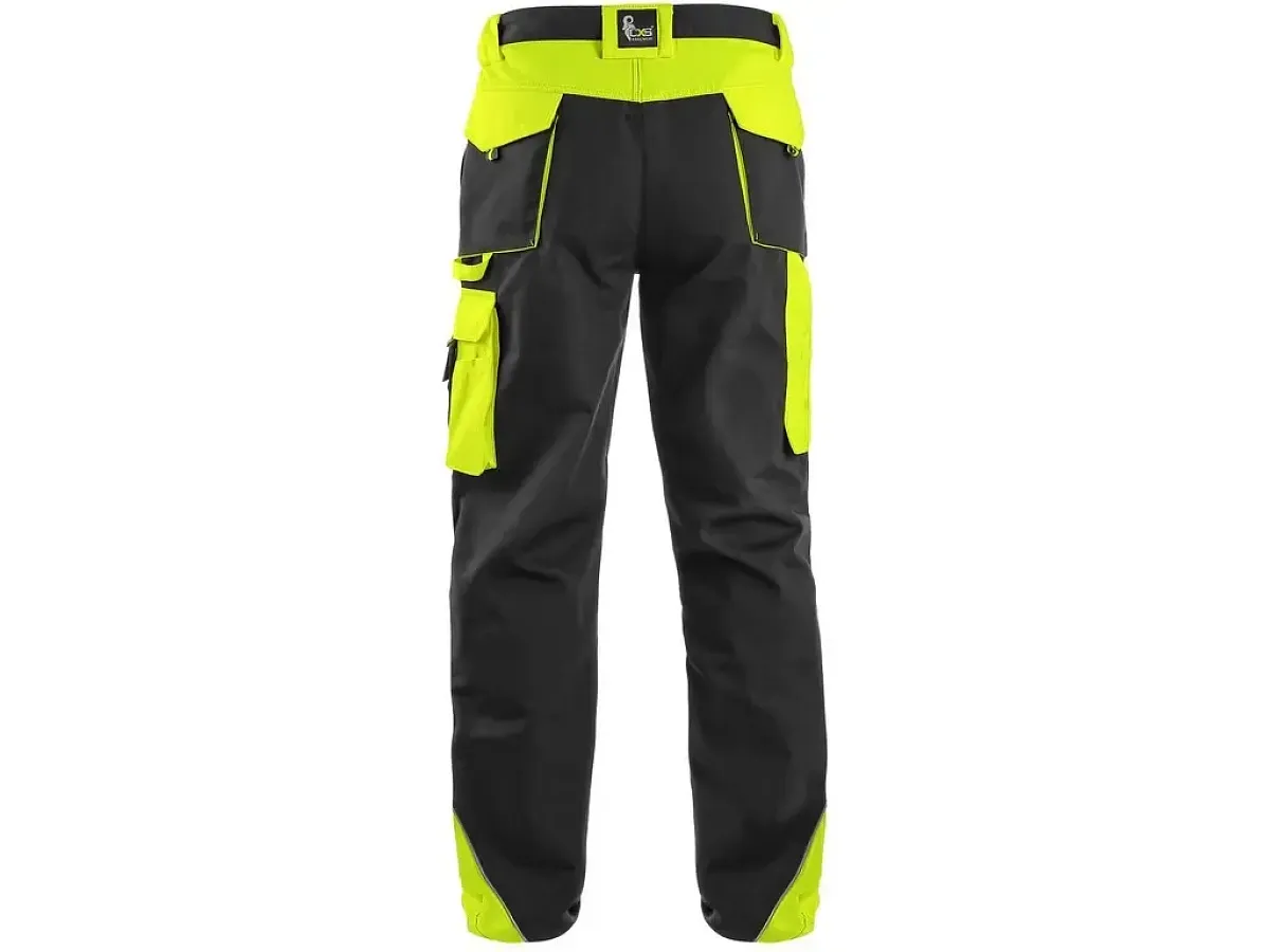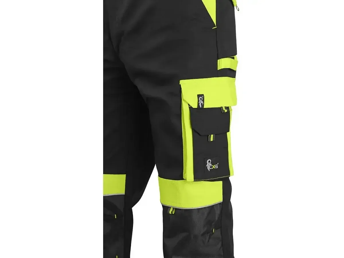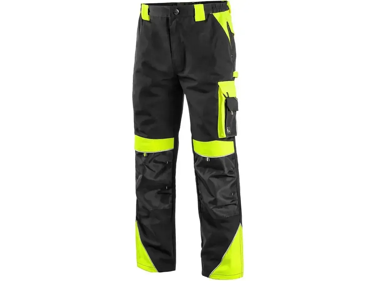 Pánske montérkové nohavice, pás s pútkami na opasok a gumou v bokoch, predné klinové vrecká, multifunkčné vrecká na oboch stranách, kolená zosilnené materiálom 600D polyesterom s možnosťou vloženia kolenných výstuh, dve zadné vrecká s chlopňami, reflexné doplnky. Odporúčané použitie: stavebníctvo, strojárstvo, ľahký priemysel, práca na ceste, odťahové služby, automobilový priemysel, logistika, skladová manipulácia, špedícia, autoservisy, údržba, montáže, poľnohospodárstvo, záhrada, hobby.