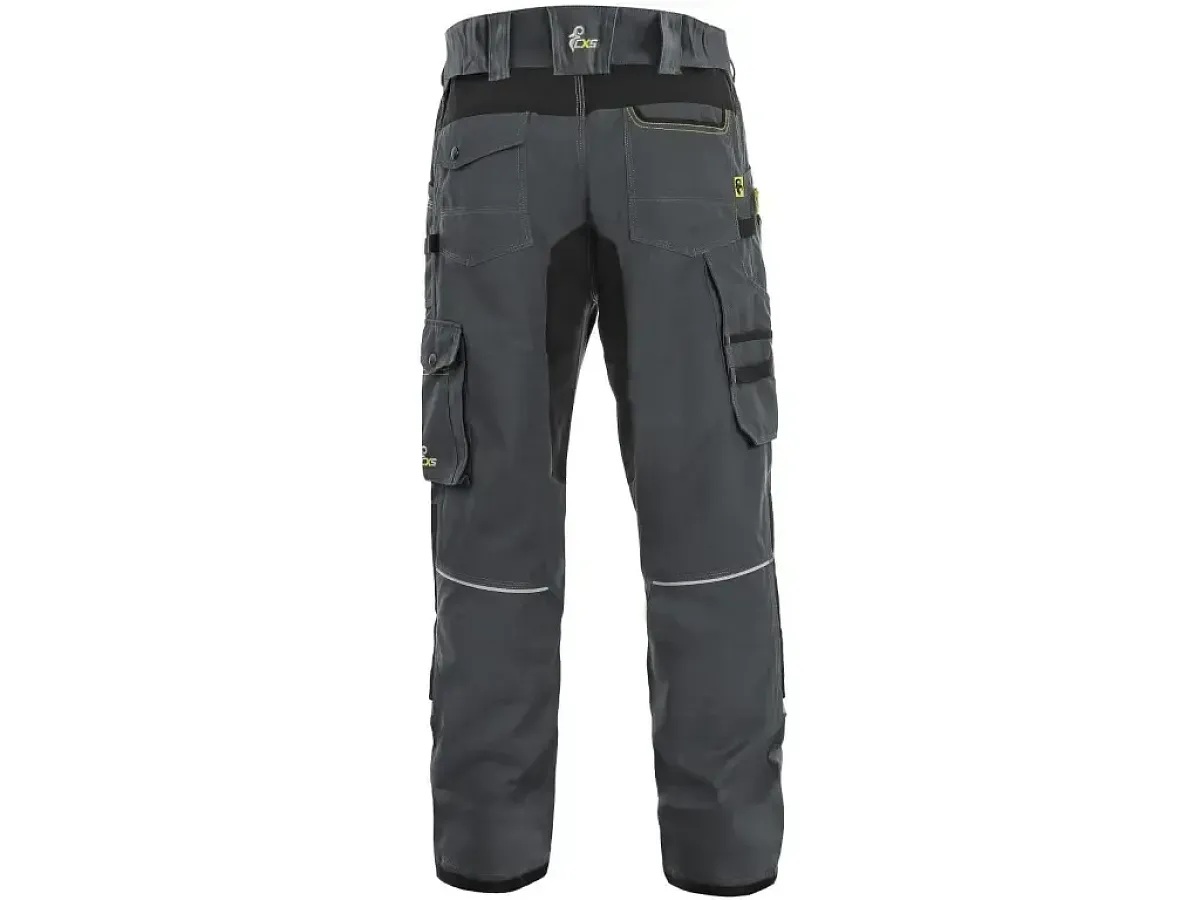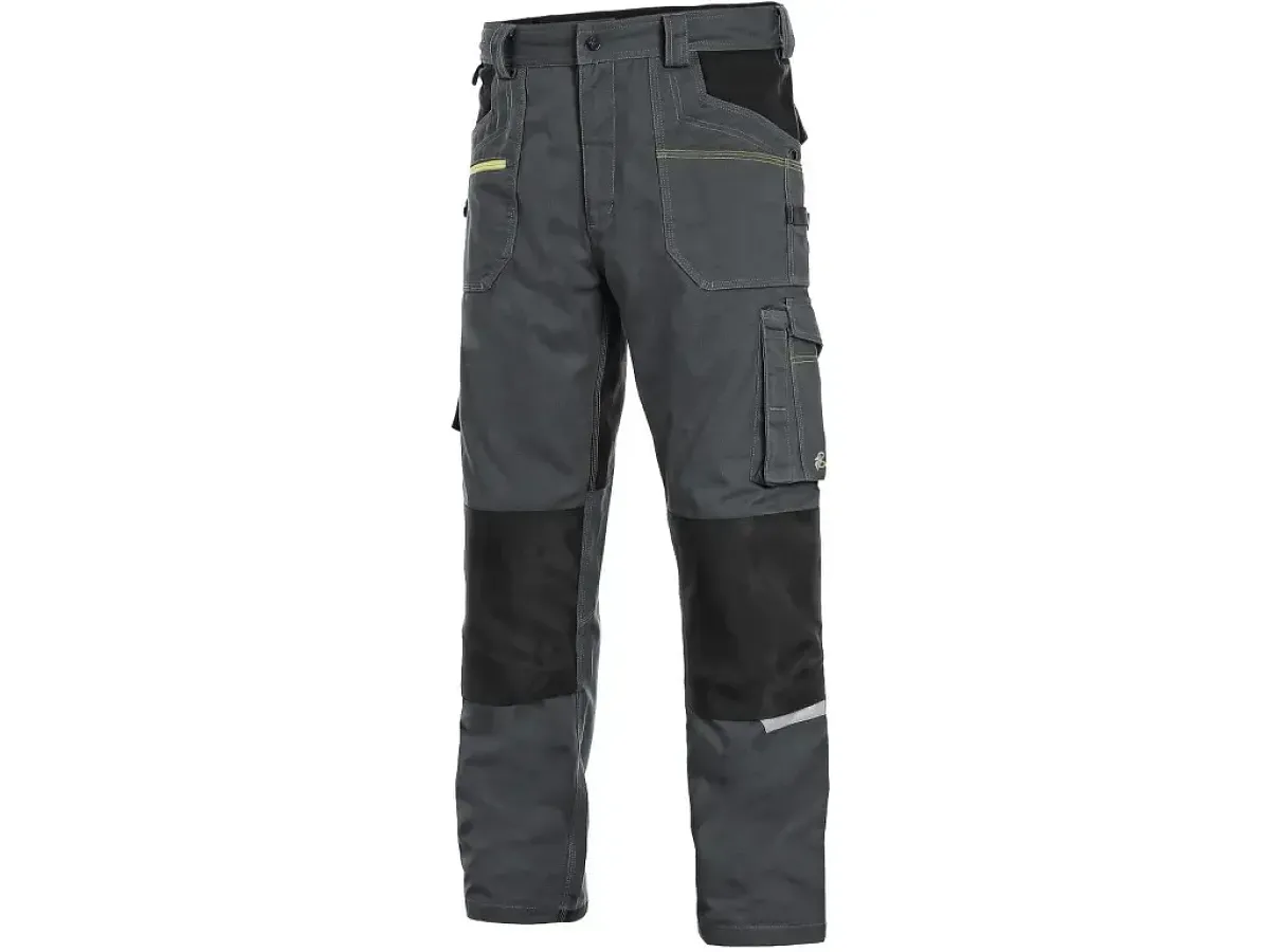 Pánske montérkové nohavice, strečová tkanina umožňujúca voľný pohyb, pás s pútkami na opasok, predné vrecká s vreckom na zips, multifunkčné vrecká na oboch stranách, kolená zosilnené 600D polyesterom s možnosťou vloženia kolenných výstuh, dve zadné vrecká - jedno s klopou, zadné spodné reflexné doplnky. Odporúčané použitie: strojárstvo, stavebníctvo, ľahký priemysel, automobilový priemysel, logistika, skladová manipulácia, špedícia, autoservisy, údržba, montáže, poľnohospodárstvo, záhrada, hobby.
