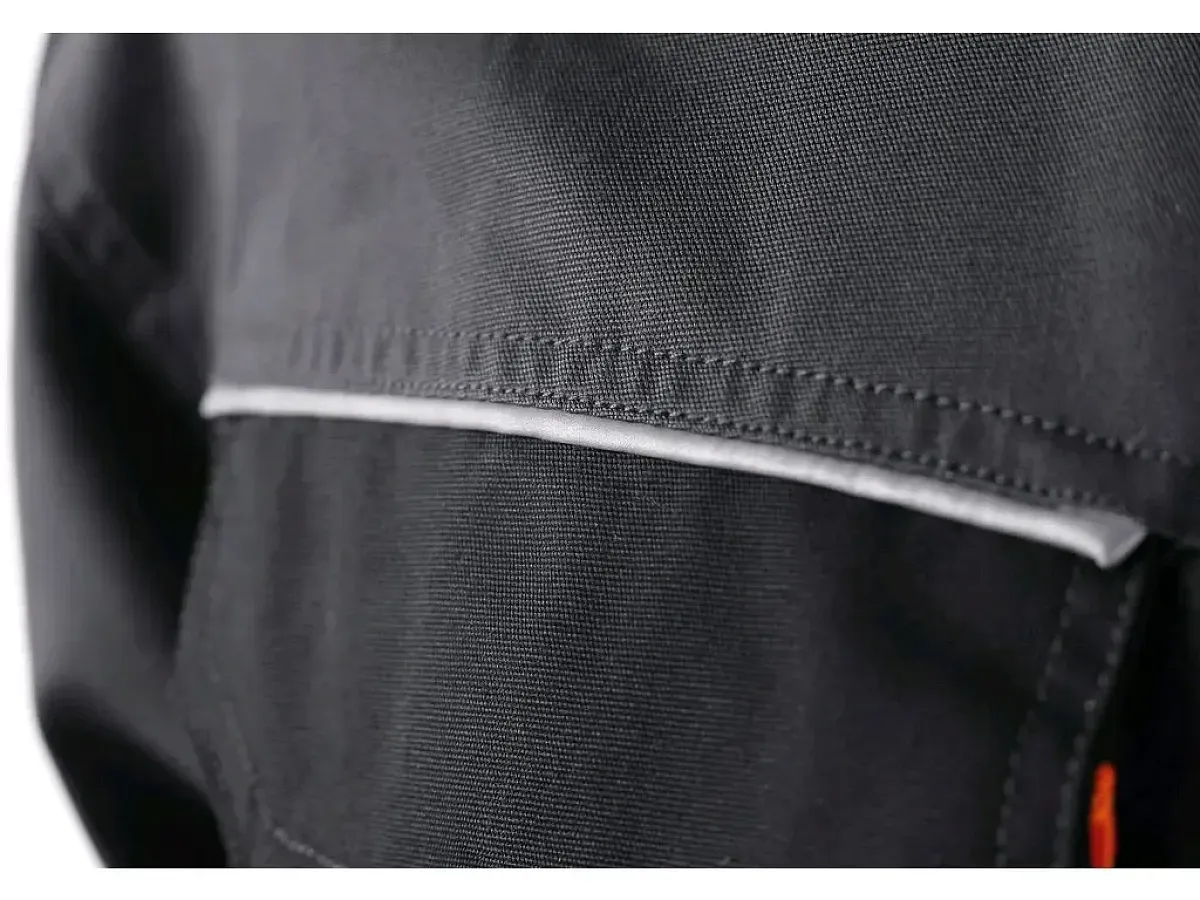Pánska montérková blúza, ramená vystužená 600D polyesterom, rukávy s nastaviteľnou manžetou, kryté zapínanie na zips a cvoky, multifunkčné náprsné vrecká, bočné vrecká na zips, regulovateľný pás, reflexné doplnky. Odporúčané použitie: stavebníctvo, strojárstvo, ľahký priemysel, automobilový priemysel, logistika, skladová manipulácia, špedícia, autoservisy, údržba, montáže, poľnohospodárstvo, záhrada, hobby.