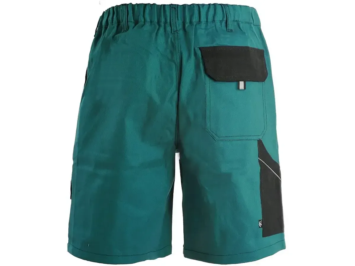 Pánske montérkové kraťasy, pás s pútkami na opasok, vzadu do gumy, predné vrecká, bočné vrecko na zvinovací / skladací meter, bočné vrecko na mobil / peňaženku, zadné vrecko s chlopňou, reflexné doplnky. Odporúčané použitie: letný pracovný odev, stavebníctvo, ľahký priemysel, logistika, skladová manipulácia, autoservisy, údržba, montáže, poľnohospodárstvo, záhrada, hobby.