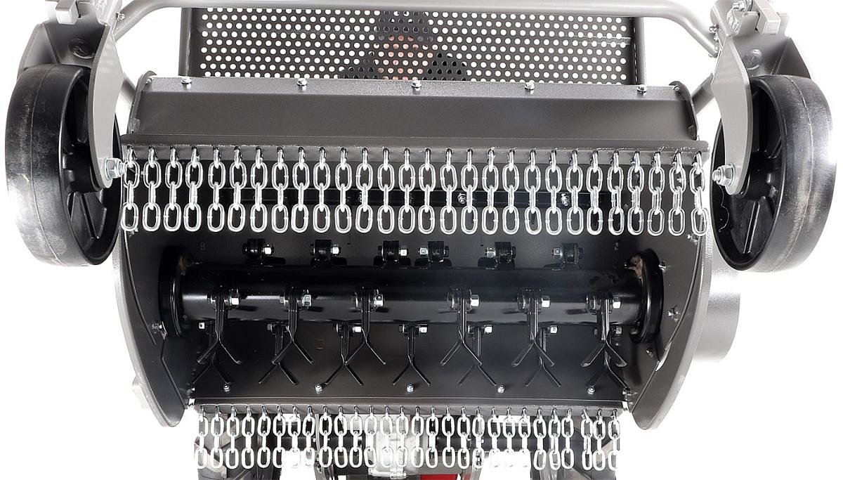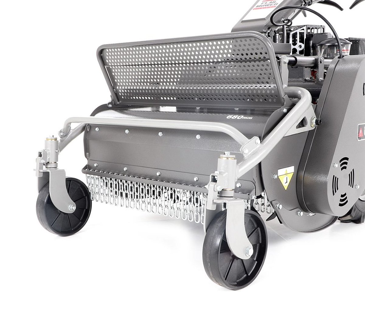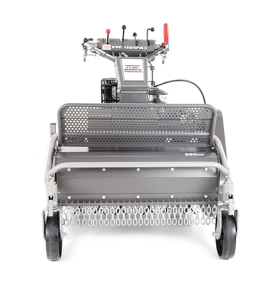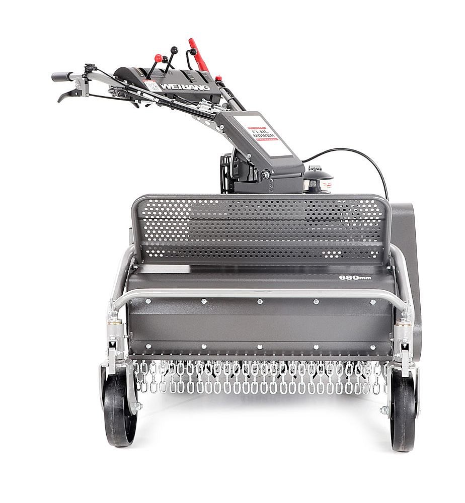 WEIBANG WB GT6813 je cepová mulčovacia (kladivková) kosačka vhodná pre likvidáciu prerastenej trávy na neudržovaných pozemkoch . Pod kovovým šasi vysokou rýchlosťou rotuje sada kladivkových nožov uchytených na valci, ktoré pokosia a podrvia prerastenú trávu, poradia si aj s drobnejšími náletmi .