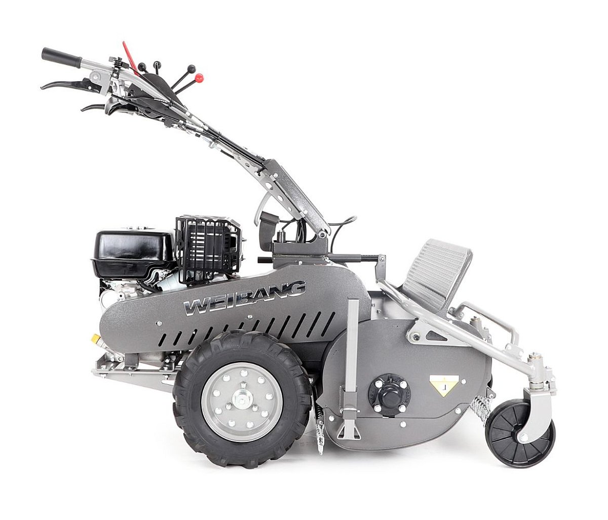 Kolesová cepová kosačka WEIBANG WB GT6813 je určená na kosenie vysoko - steblovej buriny na veľkých plochách av zložitom teréne . Je osadená benzínovým motorom s výkonom 9HP a najnovším systémom plynule meniteľnej prevodovky Weibang (CVT). Cepová kosačka je vybavená širokou žacou hlavou s oceľovými čepeľami typu Y , vďaka ktorým dokáže behom okamihu osekať všetky veľké plochy. Riadidlá je možné rýchlo nastaviť do vertikálnej aj horizontálnej polohy tak, aby vyhovovali náročným prevádzkovým podmienkam v zložitom prostredí.